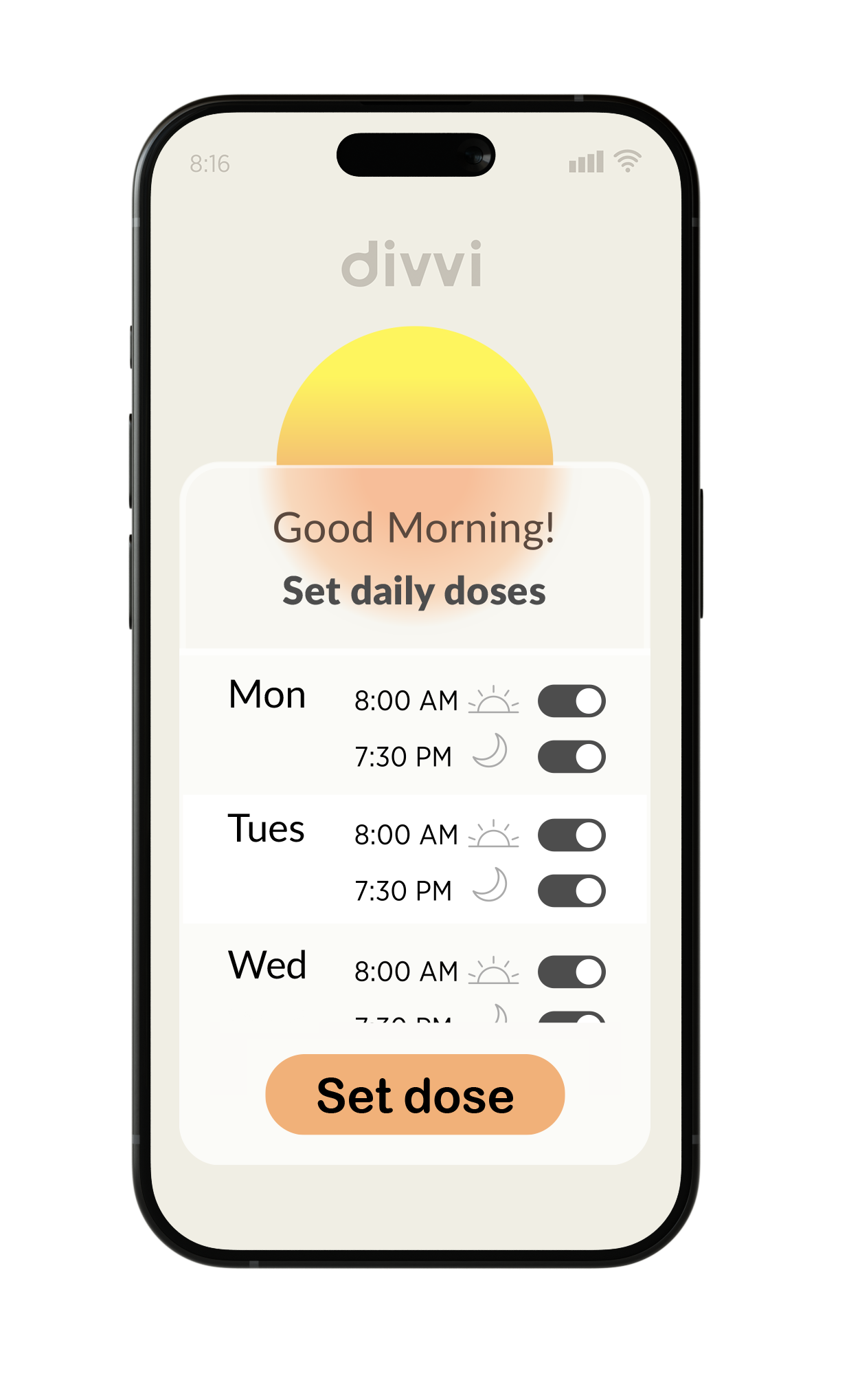 Divvi makes it easier to manage daily doses with a dispensing system built to support consistency, independence, and better adherence.